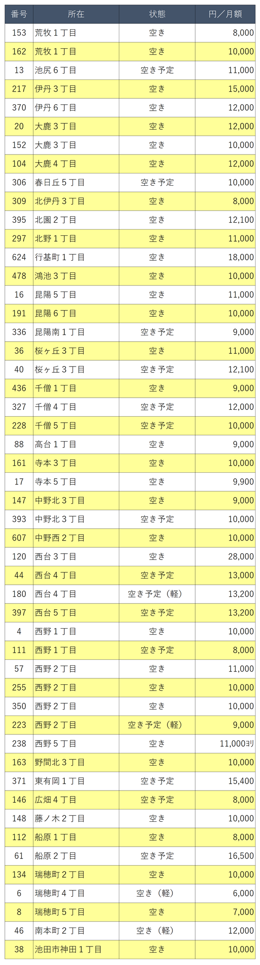 その他の駐車場は下表をご覧ください。(伊丹市内 所在地 50音順 / 伊丹市外は末尾)