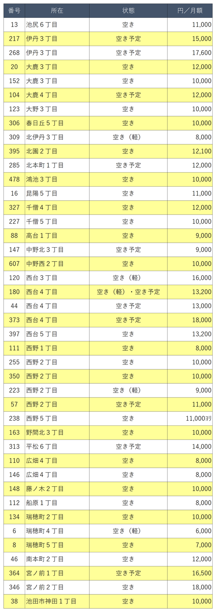 月極駐車場の空き・空き予定を更新しました。
